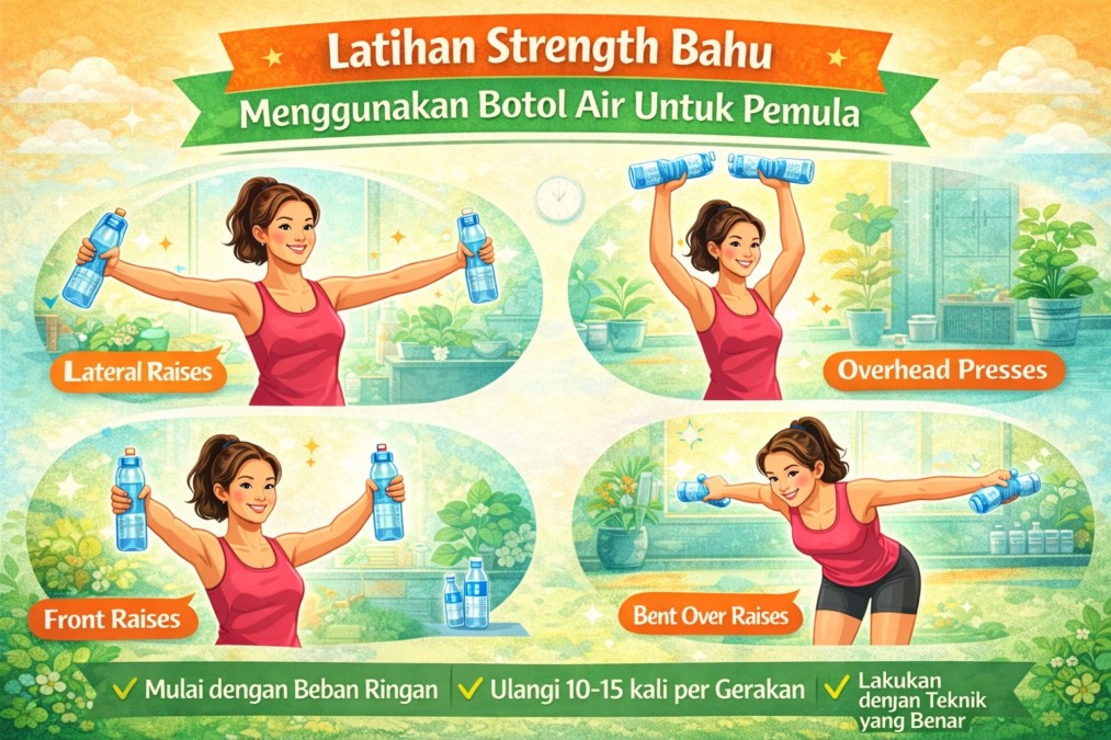Latihan strength bahu menggunakan botol air merupakan pilihan aman dan efektif bagi pemula yang ingin meningkatkan kekuatan otot tanpa peralatan mahal. Dengan teknik yang tepat dan latihan rutin, bahu akan menjadi lebih kuat, stabil, dan siap menunjang berbagai aktivitas sehari-hari.