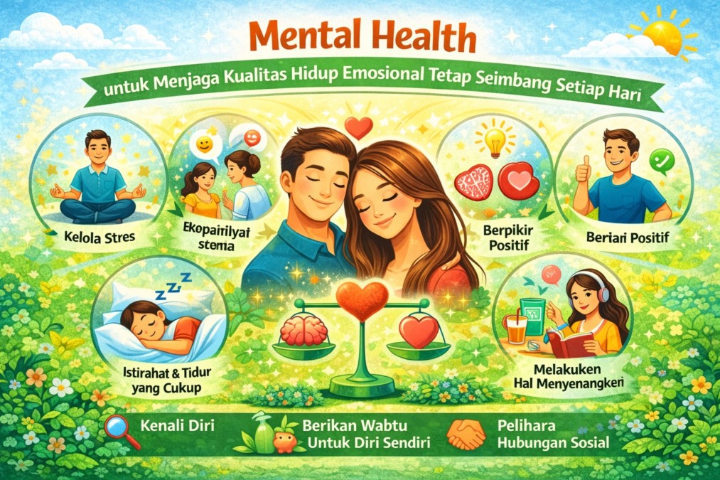 Mental health memiliki peran penting dalam menjaga kualitas hidup emosional agar tetap seimbang setiap hari. Dengan memahami pentingnya kesehatan mental, mengenali faktor yang memengaruhi emosi, serta menerapkan kebiasaan positif secara konsisten, seseorang dapat meningkatkan kesejahteraan emosionalnya. Menjaga mental health adalah langkah nyata untuk hidup yang lebih tenang, produktif, dan bahagia dalam jangka panjang.