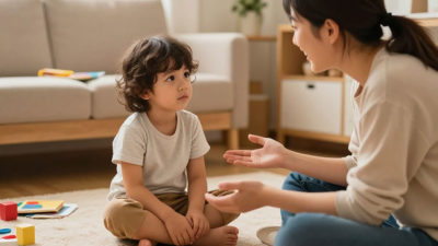 Cobalah mendekati anak dengan lembut dan beri mereka ruang untuk menenangkan diri. Setelah emosi anak mulai mereda, barulah ajak mereka berbicara secara sederhana mengenai apa yang mereka rasakan. Pendekatan ini membantu anak belajar mengenali dan mengelola emosinya secara bertahap.